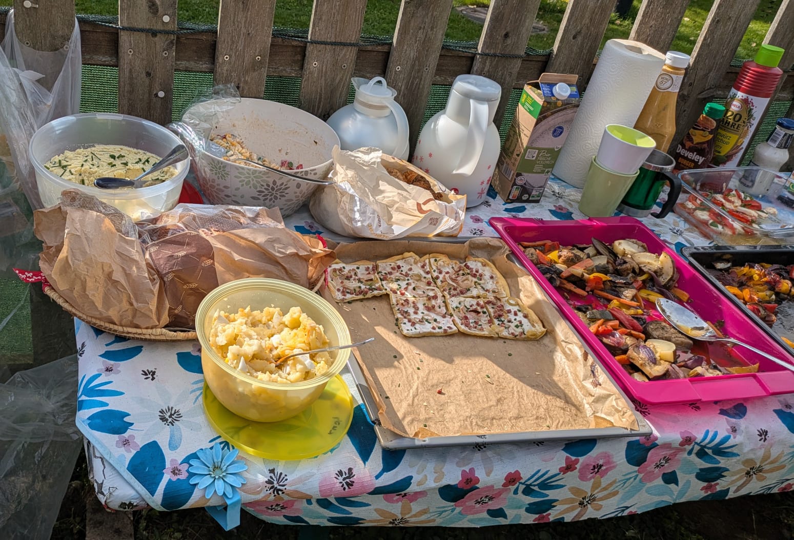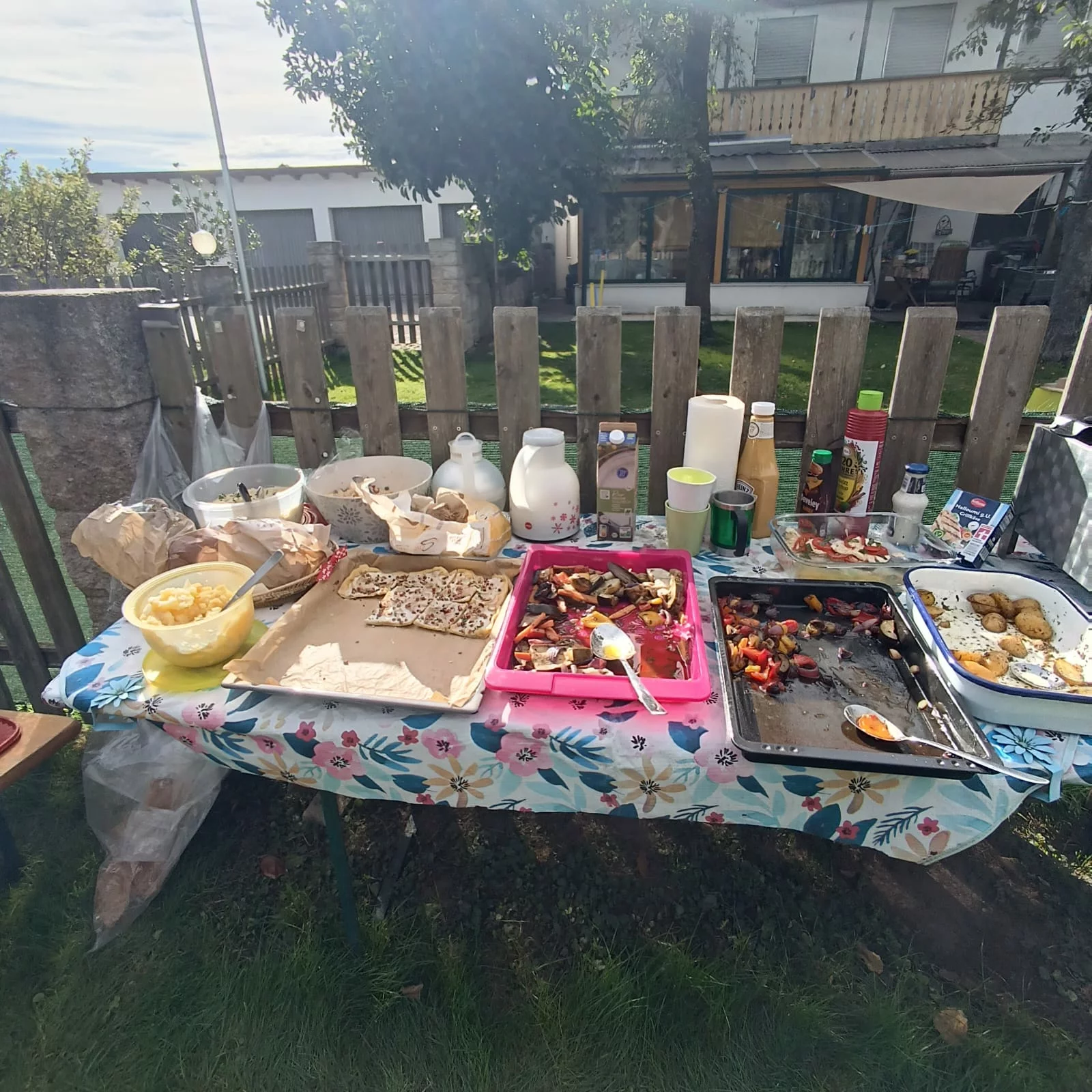 Sachen für das Salat- und Kuchenbuffet mitgebracht, sondern